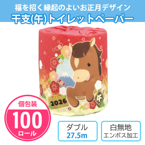 トイレットペーパー 干支 お年賀 2026 個包装 景品 お正月 馬 粗品「干支(午) 100個」