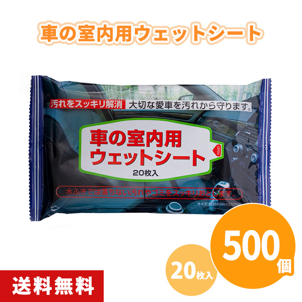車内 クリーナー 販促 粗品 「車の室内用ウェットシート 20枚入×500個」 ノベルティ 景品 業務用 大量 シート 清掃 自動車