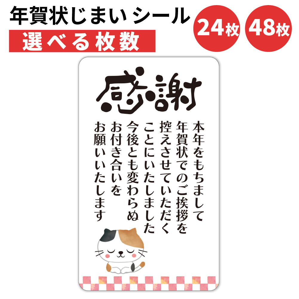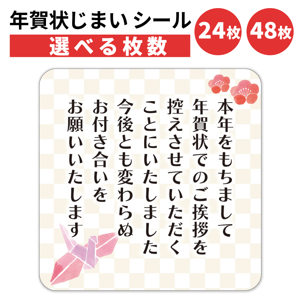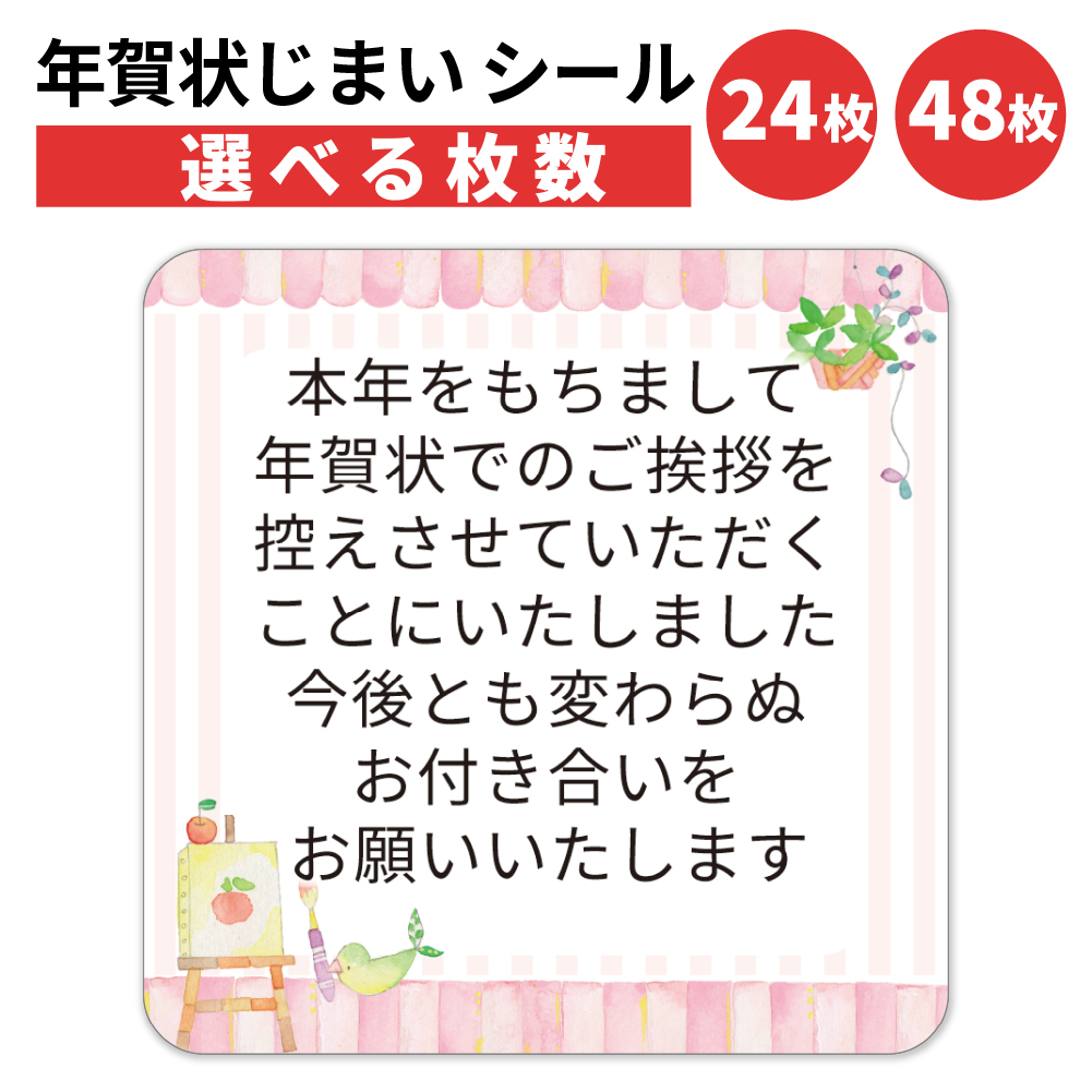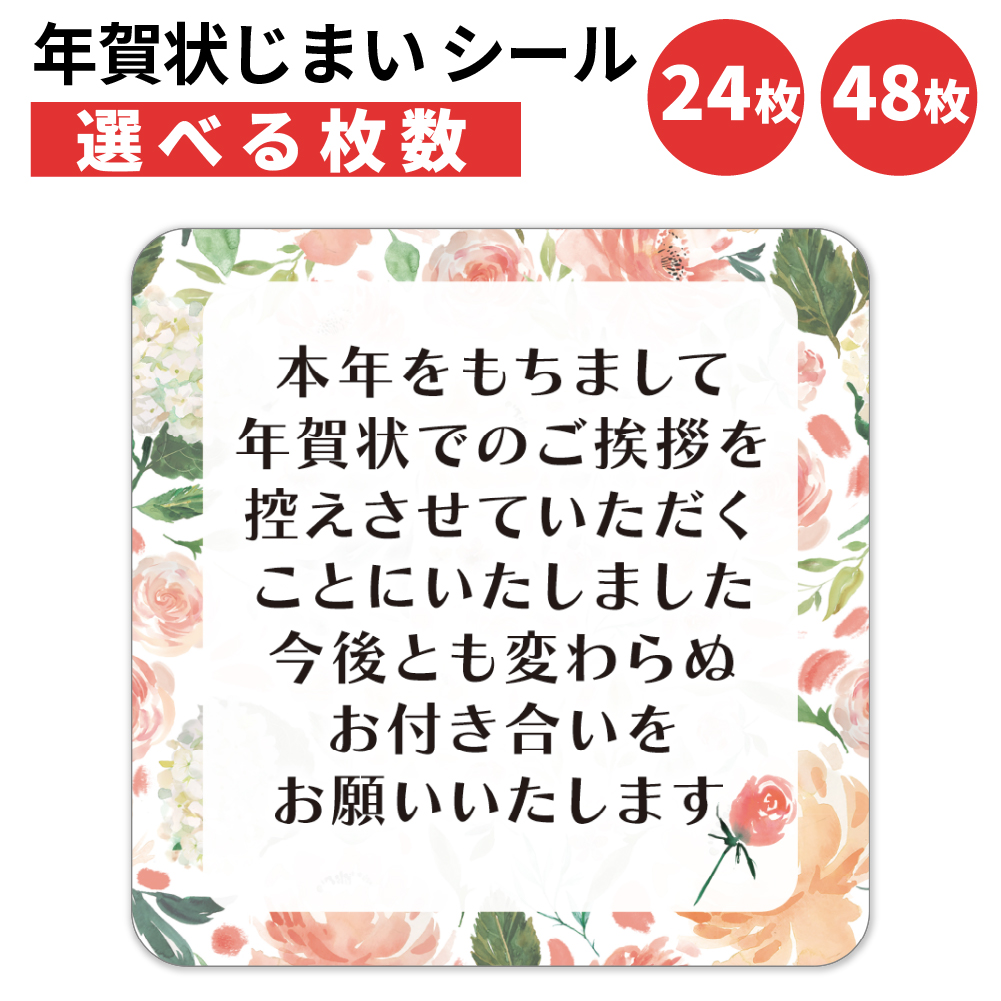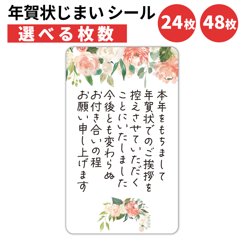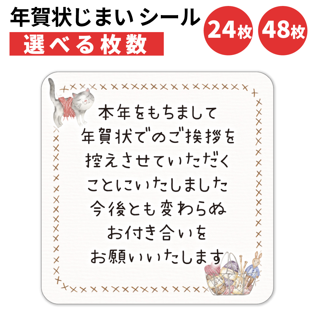 年賀状じまい シール 24枚 48枚 選べる枚数 5×3cm 貼るだけで丁寧に伝わる 年賀状 終い 挨拶 ステッカー 仕事 ビジネス用 友人 日本製 干支 細タイプ