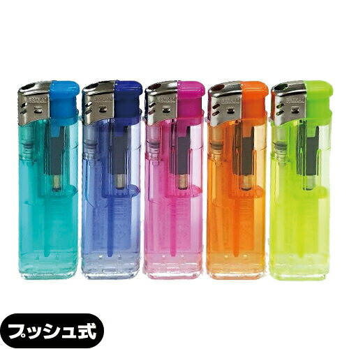 直押し式の使い捨てライター 。押し始めは軟らかく、後から硬くなるソフト&ハードタイプの構造です。 初動時の勢いが荷重を緩和しますので着火しやすくなっている荷重式電子ライターです。