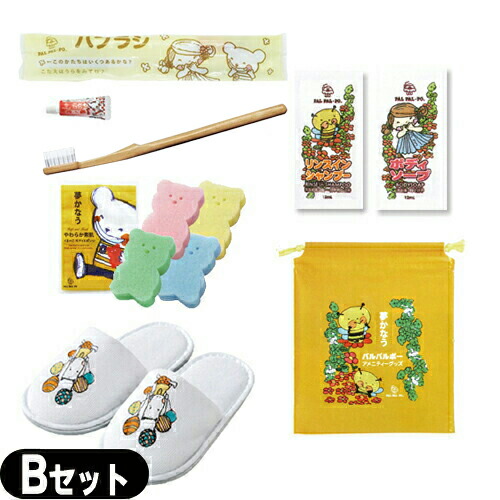 パルパルポー 子供用 アメニティセットB (歯ブラシ・スポンジ・ボディーソープ・リンスインシャンプー・スリッパ・バッグ)