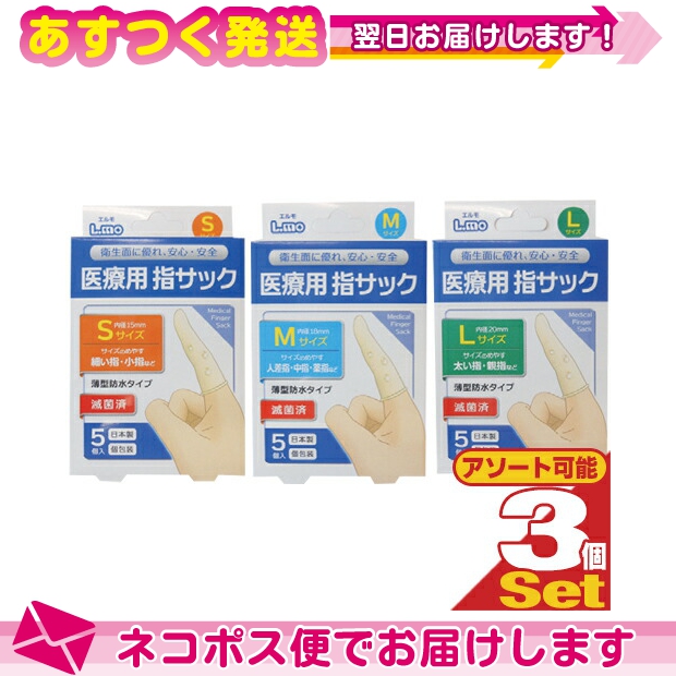 正規代理店 日進医療器 ユニコ (unico)エルモ 医療用滅菌指サック 5個入り x3箱セット (S/M/Lから選択) :ネコポス送料無料