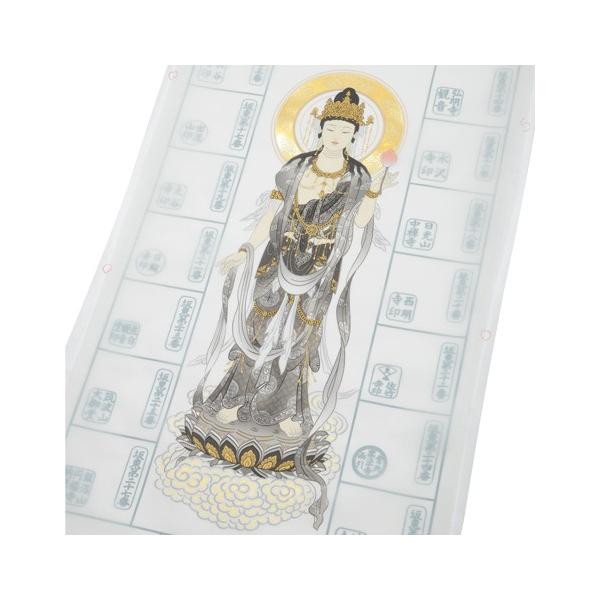 坂東三十三観音霊場第1番「杉本寺」から第33番「那古寺」までの33ヶ寺に加え、番外1ヶ寺のご宝印(ご朱印)欄が設けられています。(計34マスとなります)