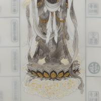 高級本金箔と墨彩調で仕上げられた正面観音納経軸です。