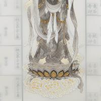高級本金箔と墨彩調で仕上げられた正面観音納経軸です。