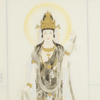 観音様が凛とした佇まいで、落ち着いた雰囲気の宝印軸です。