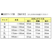 サイズは下記の5種類となります。 ■サイズ S =着丈67cm、肩巾59cm、胸巾62cm、裾巾62cm、袖丈30cm、袖口巾24.5cm M =着丈72cm、肩巾63cm、胸巾66cm、裾巾66cm、袖丈32cm、袖口巾26cm L =着丈77cm、肩巾67cm、胸巾70cm、裾巾70cm、袖丈34cm、袖口巾27.5cm 2L=着丈82cm、肩巾71cm、胸巾74cm、裾巾74cm、袖丈36cm、袖口巾29cm 3L=着丈87cm、肩巾75cm、胸巾78cm、裾巾78cm、袖丈38cm、袖口巾30.5cm