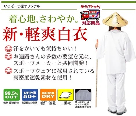 お遍路さんのご要望を反映した、今までに無い機能的白衣です。
