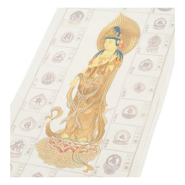 高級本金箔と墨彩調で仕上げられた正面観音納経軸です。