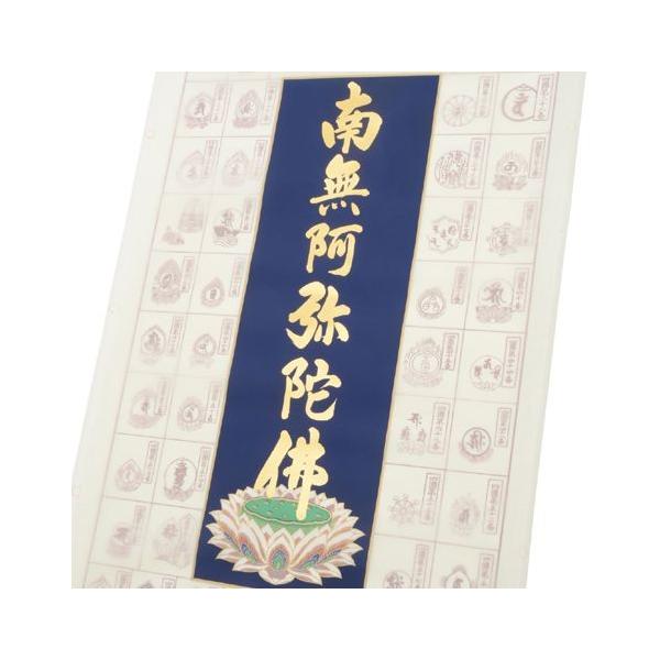 六字名号(南無阿弥陀仏)の下にはカラーの蓮台が描かれ、とても華やかです。