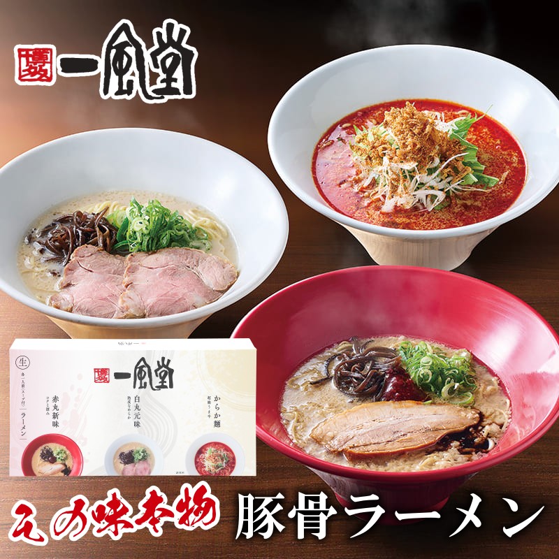 一風堂を代表する白丸・赤丸・からかを揃えた、一風堂を代表するラーメンの3食セットです。