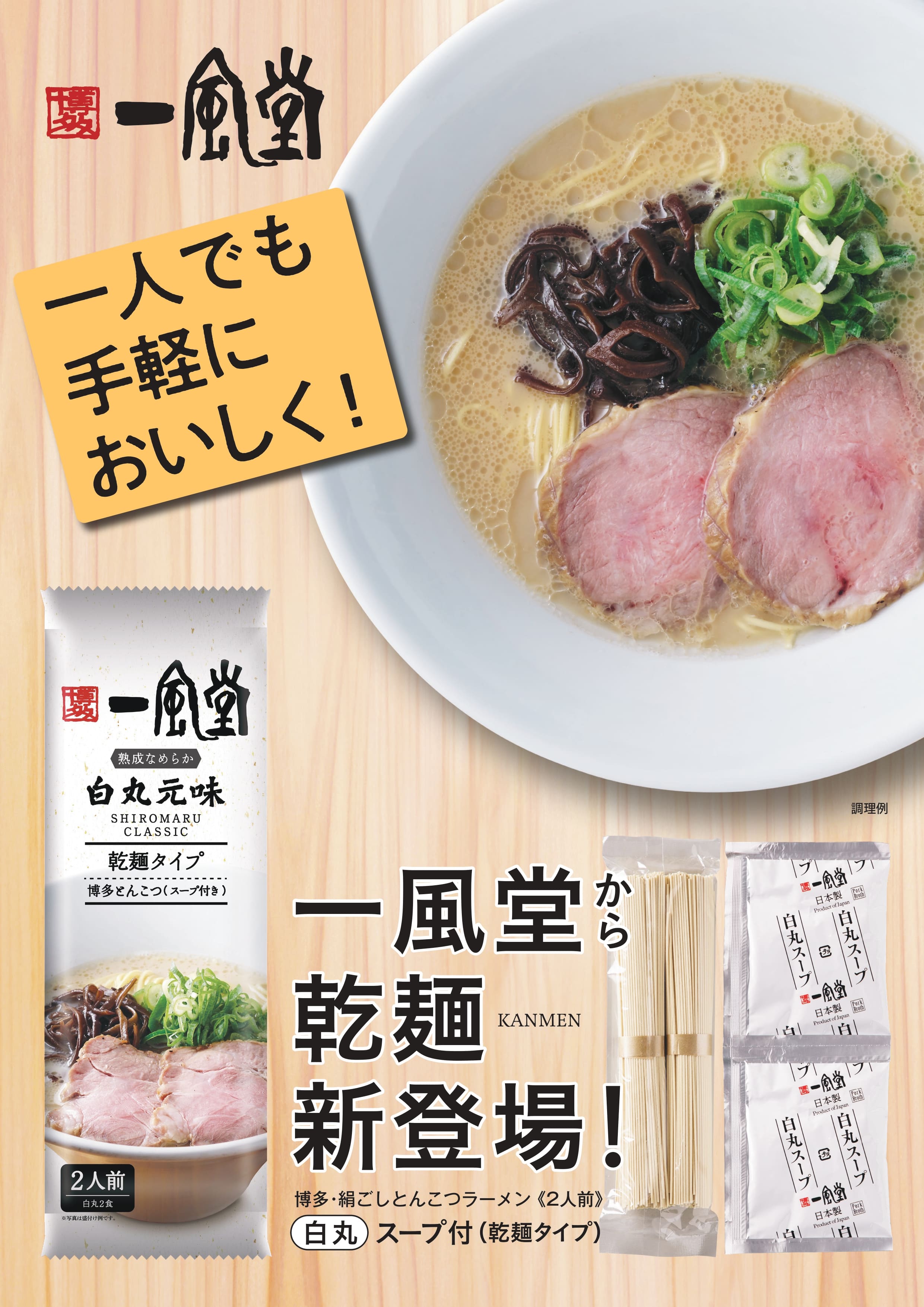 | 内容量(白丸赤丸各1食入り) | 一風堂白丸1食(115g:麺75g、スープ40g) 一風堂赤丸1食(123g:麺75g、スープ40g、辛味噌5g、香油3g) |