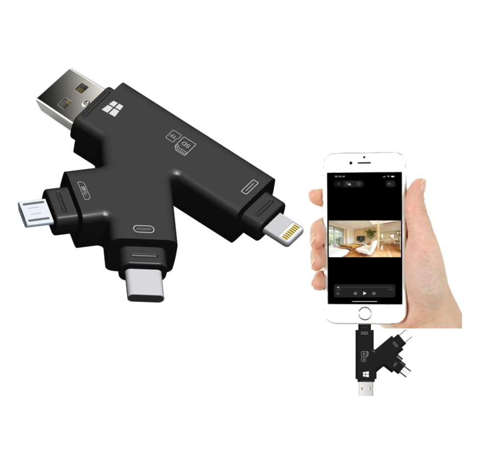 カードリーダー USB マイクロ SD カード スマホ スマートフォン i-Phone iphone i-pad ipad アイホン アイフォン android アンドロイド 動画 画像 写真 記録 防犯カメラ camera セキュリティ ネットワーク IP カメラ 防犯 小型 ミニ マイクロ 見る 見れる 見られる 閲覧 再生 できる パソコン 不要 なくても 挿すだけ micro usb a c usb-c lightning ライトニング apple ios 保管 バックアップ backup 大事 貴重 保護 avi mp3 mp4 mov flv mog gif m4v ts 3gp jpg jpeg bmp bmpf tif tiff png gif xbm ico cur aif wav aiff m4a acc doc docx xls xlsx ppt pptx apple iwork key numbers rages others pdf htm html txt rtf microsoft office