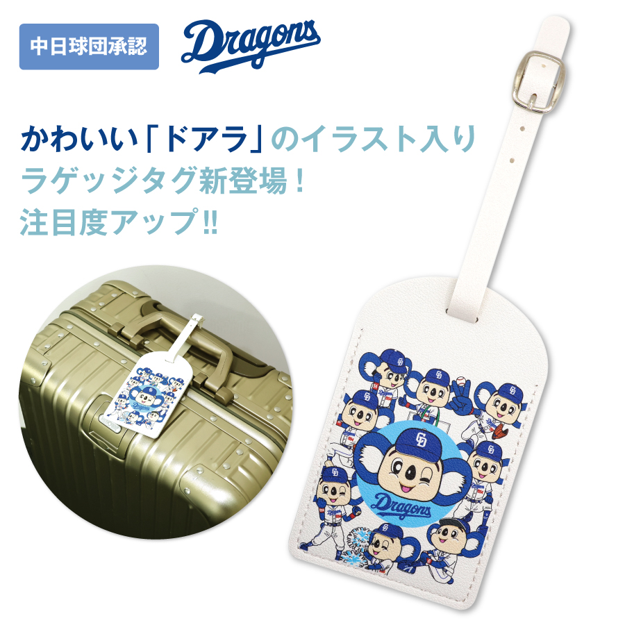 商品特徴 | 中日ドラゴンズ承認ラゲッジタグ スーツケースや旅行カバン、普段使いのリュックなどさまざまなバッグに使用できます。 ドアラとドラゴンズ坊やのイラストがかわいい! 旅行時の目印としても最適! 濡れても拭ける素材で雨の日や水場でも安心です。 鞄に付けても主張しすぎないシンプルなデザイン。 ベルト部分が4段階で調整可能なので、幅が広くなる荷物にも装着できます。 |