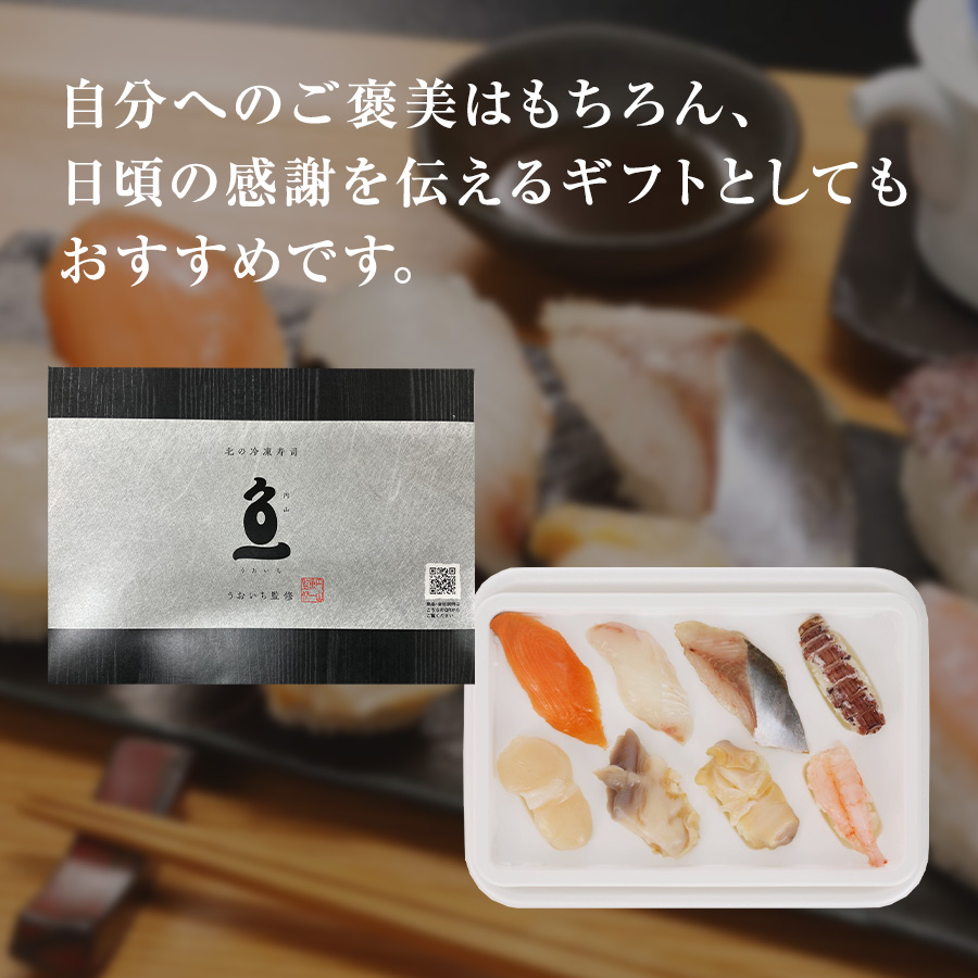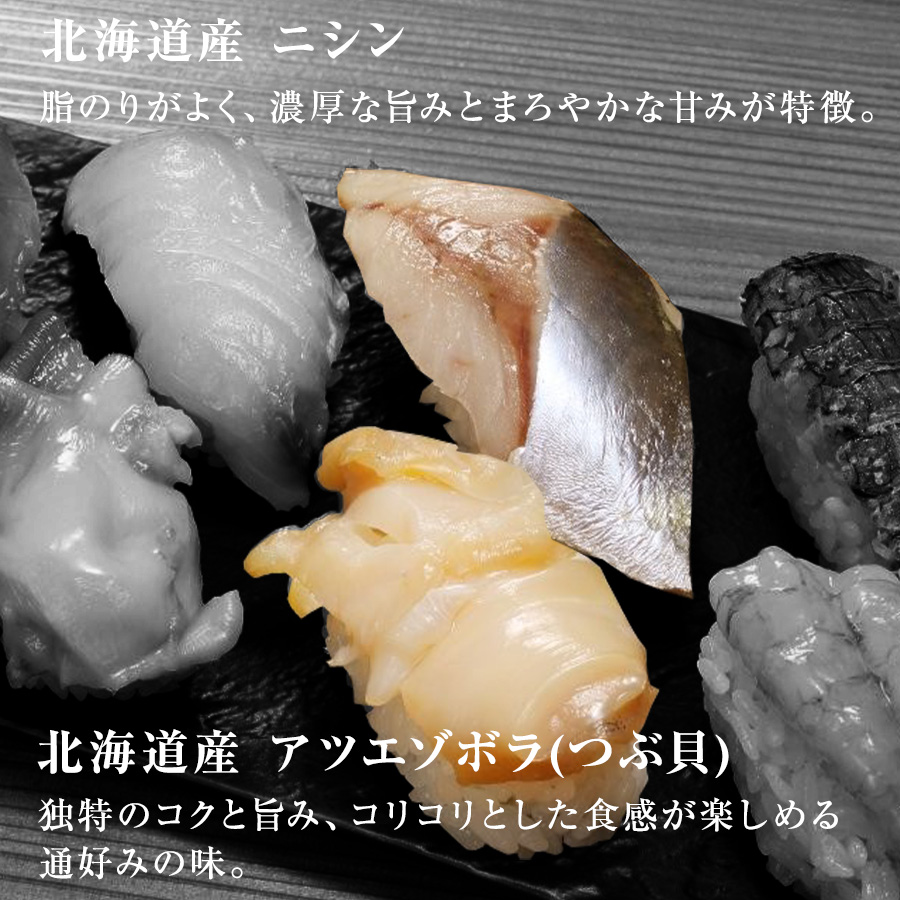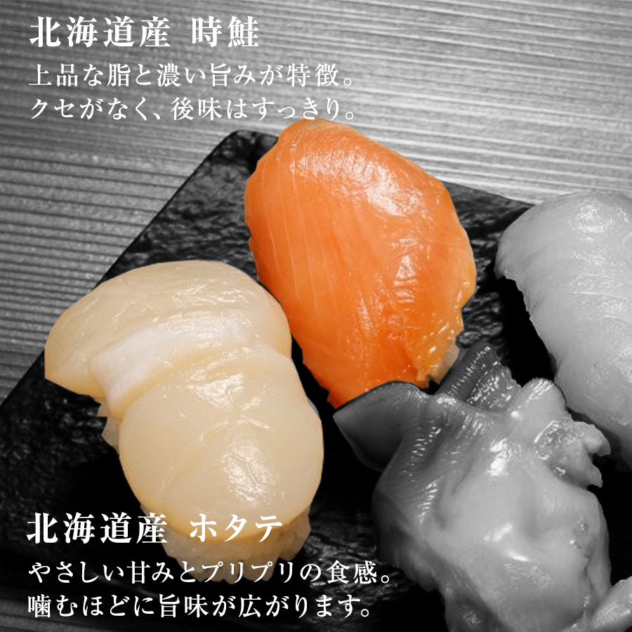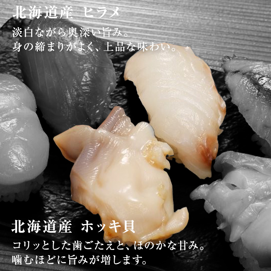 | 名称 | 寿司 冷凍 握り 北海道 札幌市 「円山うおいち」監修。北海道産 ホタテ/トキサケ/ホッキガイ/ヒラメ/アツエゾボラ/ニシン/アマエビ/シャコ |