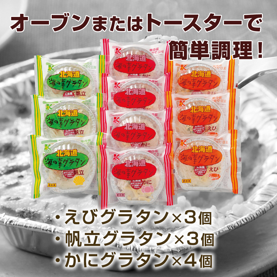 | 名称 | 海の幸グラタン 3種10個 ギフトセット 海老グラタン/帆立グラタン/蟹グラタン 簡単調理 便利な一人分個包装 3種類(えび ホタテ かに) お取り寄せ 北海道 海鮮 グラタン お歳暮 ギフト 御歳暮 内祝い お礼 詰め合わせ 冷凍 【送料無料】 |