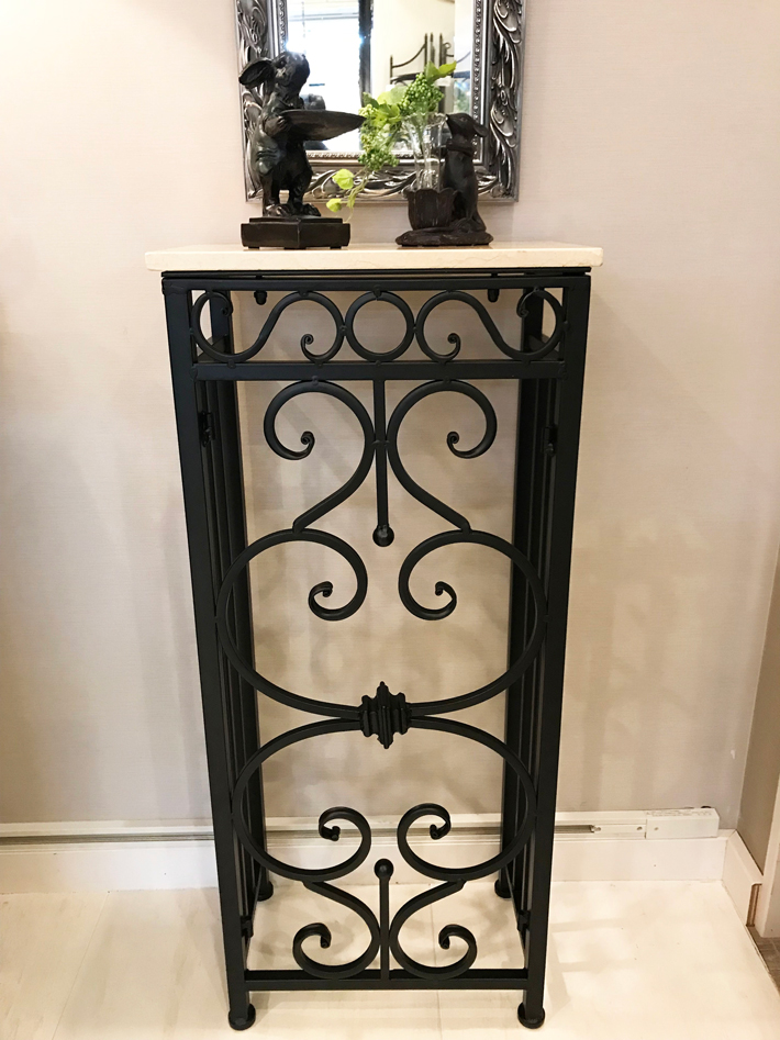 美しい曲線のアイアンと暖かみのある大理石がマッチした高級感漂うコンソールテーブルです。