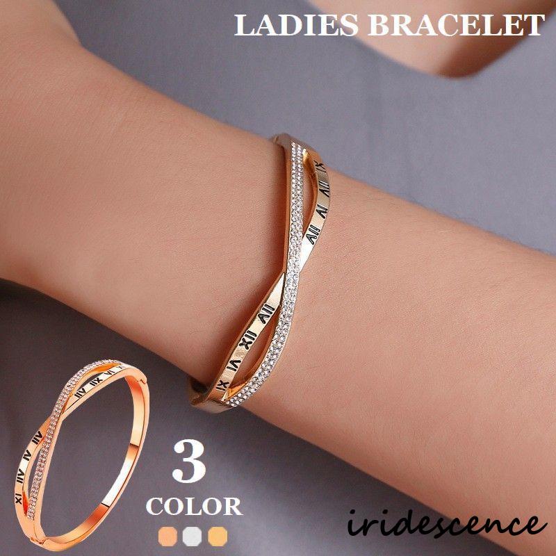 バングル ブレスレット 腕輪 レディース アクセサリー クロス ローマ数字 ラインストーン 女性用 婦人用 ゴールドカラー シルバーカラー カジュアル