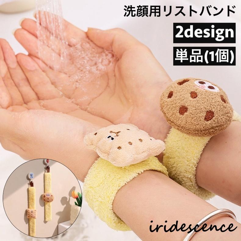 リストバンド 洗顔用 単品 1個 片手用 吸水 洗面用 バンド 手首 ウォッシュバンド 袖口 腕 メイク落とし 袖濡れ防止 服濡れ防止 クッキー ビス