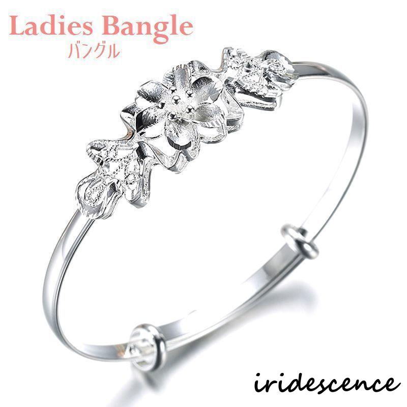バングル ブレスレット レディース 女性用 腕輪 アクセサリー シルバーカラー 花 フラワー 細め 細い 高級感 おしゃれ かわいい プレゼント
