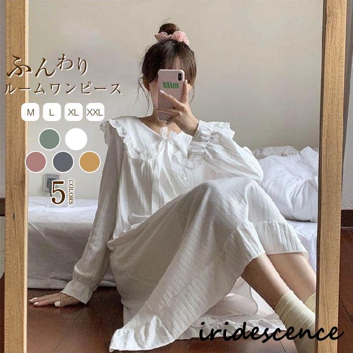 パジャマ ネグリジェ ルームウェア レディース 春 秋 冬 寝巻き ルームワンピース 姫系 ロング丈ネグリジェ ワンピース 長袖 無地 ナイトウェア 部屋着 可愛い