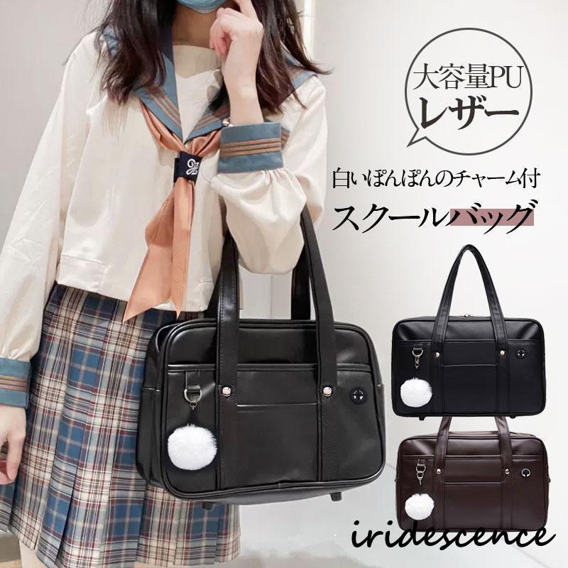 ススクールバッグ スクバ 制服バッグ シンプル肩掛け 学生カバン ファッション 学生鞄 合皮 通学 高校生 中学生 おしゃれ PUレザー イヤホン穴付き