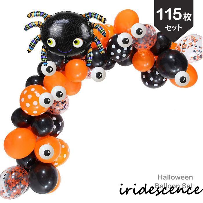 バルーンセット 飾り付け 115枚入り ガーランド 紙吹雪 クモ 目玉 スパイダー ドット バルーンキット 風船 ハロウィーンパーティ 装飾