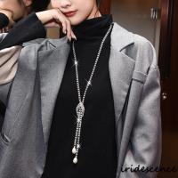 キラキラのラインストーンをぎっしり埋め込んだモチーフが目を引く、とてもエレガントなロングネックレス