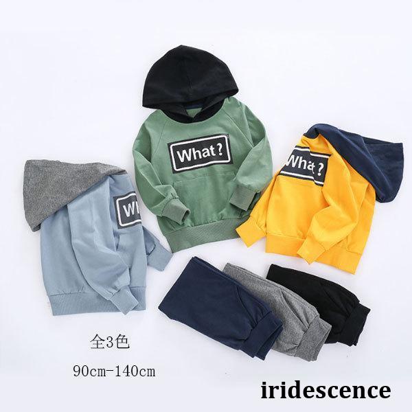 子ども服 セットアップ 男の子 ベビー 秋服 上下セット キッズ スウェット+長ズボン 2点セット フード付き ベーシッ お出かけ 通園 通学 運動着 全3色 90-140