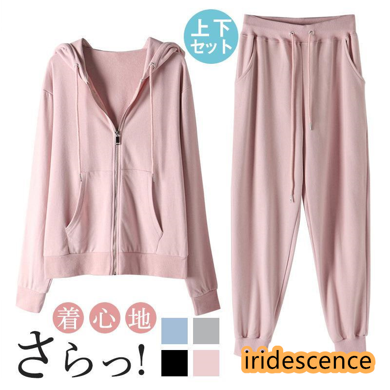 ジャージ セットアップ レディース 上下セット スウェット フード付き スポーツ 韓国風 運動着 部屋着 ルームウェア シンプル パジャマ ヨガウェア