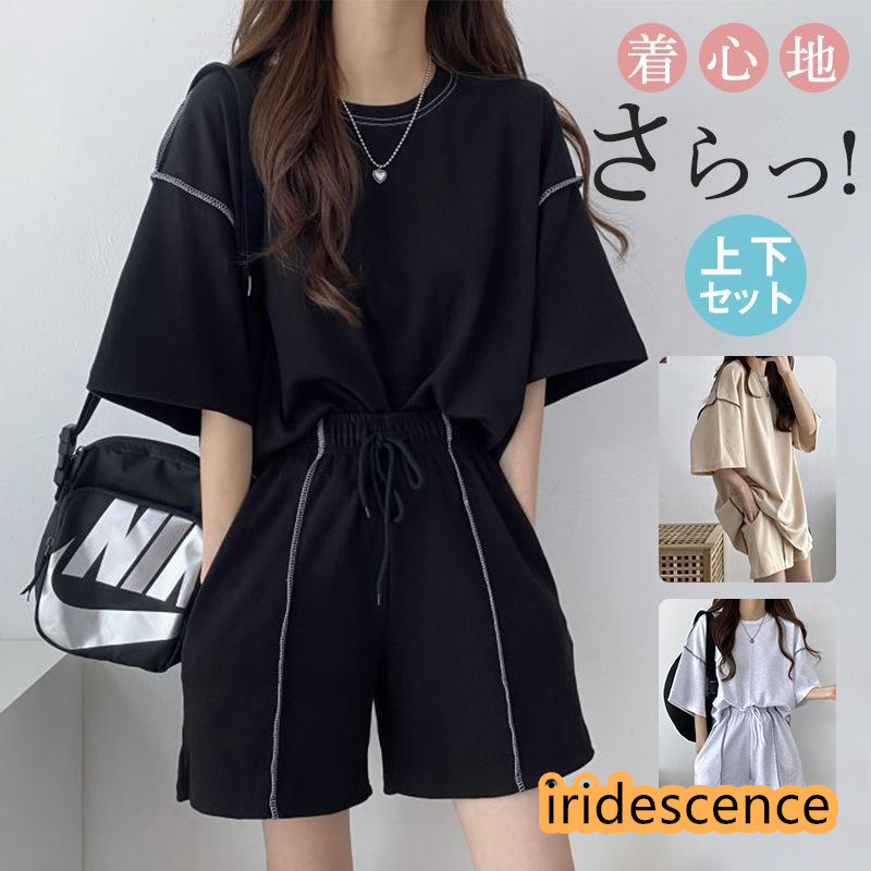ジャージ セットアップ レディース 上下セット スウェット アメカジ 夏物 無地 半袖トップス 大きいサイズ 着痩せ 細身 韓国風 ゆったり お出かけ