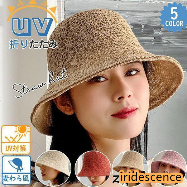 帽子 レディース UVカット UV 折りたたみ 麦わら風 大きいサイズ ハット 無地 日よけ 春 夏 アウトドア 紫外線対策 かわいい おしゃれ