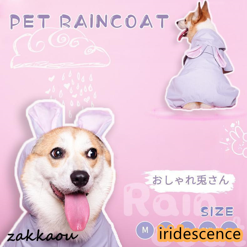 可愛いウサギさん 中/大型犬用レインコート レインポンチョ カッパ 犬用合羽 丸ごと包み 4本足 帽子付 お散歩 お出かけ 梅雨対策 濡れない 通気 耐久性