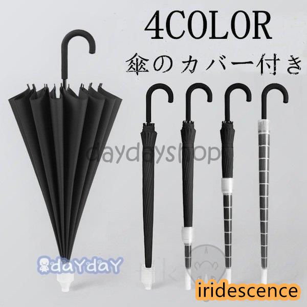 傘 ジャンプ 雨傘 16本骨傘 手 雨傘 番傘 長傘 アイデア傘カバー付き 周囲を濡らさない スライドキャップ 丈夫 通学 無地 通勤