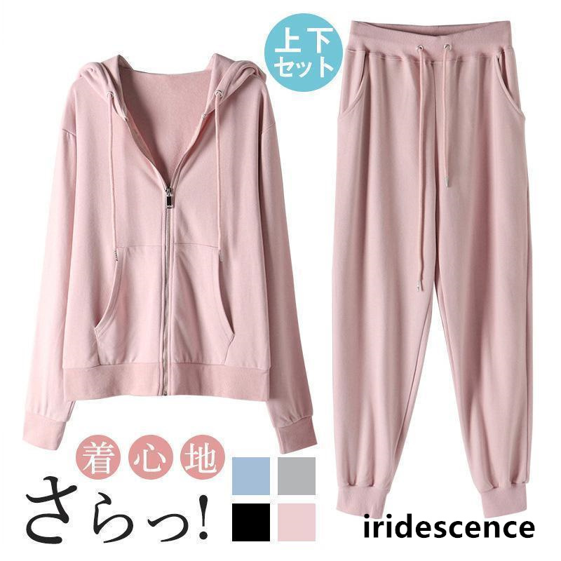 ジャージ セットアップ レディース 上下セット スウェット フード付き スポーツ 韓国風 運動着 部屋着 ルームウェア シンプル パジャマ ヨガウェア