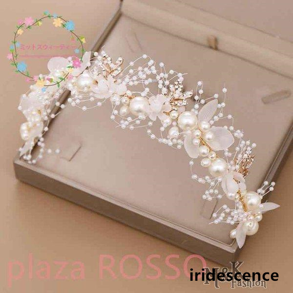 カチューシャ ティアラ ウエディング 髪飾り 花嫁 結婚式 ヘッドドレス ブライダル パーティー 二次会 ヘアアクセサリー パール ホワイト 花 発表会 披露宴