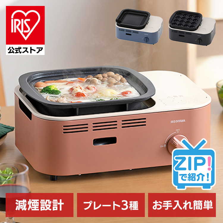 (検索用:カセットコンロ・減煙・焼肉・鍋・たこ焼き・すき焼き・プレート・グリル・卓上・コンロ・カセットボンベ・カセットガス・煙が少ない・防災・備蓄・停電・コードレス・4967576686457・4967576686464・4967576686471・アイリスオーヤマ)