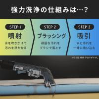 ◆強力洗浄の仕組みは水を吹きかけて汚れを浮かせ、水と汚れを一緒に吸い込む。