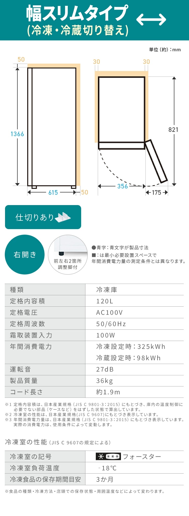 狭いスペースでも置きやすいセカンド冷凍庫。