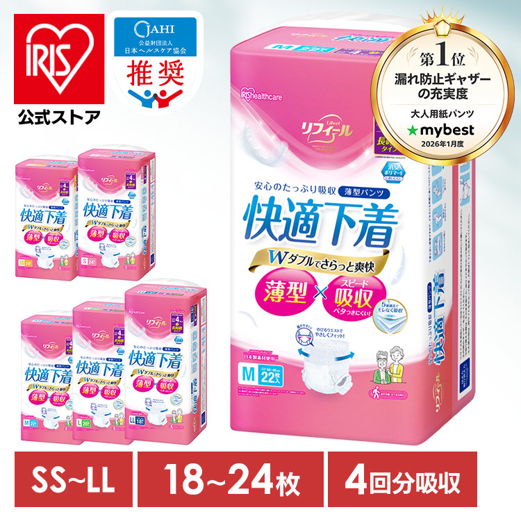 (検索用:大人用おむつ・パンツタイプ・薄型・長時間・SS・S・M・L・LL・4回吸収・吸収量・多い・消臭・紙パンツ・リハビリ・旅行・男性・女性・快適下着・リフィール・アイリスオーヤマ・4967576769006・4967576769013・4967576769020・4967576769037・4967576769044・アイリスオーヤマ)