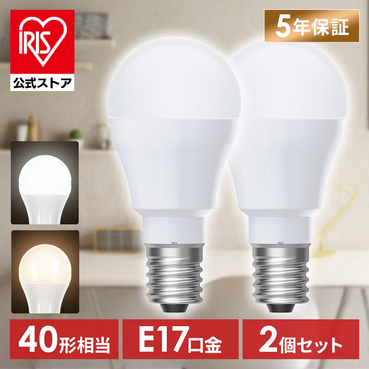 (検索用:2個・led電球・e17・40w・昼白色・電球色・全方向タイプ・5年保証・LED・電球・E17・アイリスオーヤマ・4967576773348・4967576773355・アイリスオーヤマ)