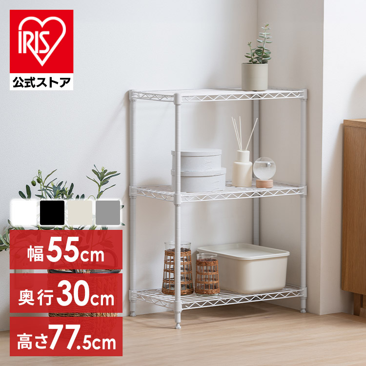 (検索用:スチールラック・幅55・奥行30・黒・白・メタルラック・3段・スリム・スペパ・カラーメタルラック・おしゃれ・ホワイト・ブラック・ダークグレー・グレージュ・・棚・メタルシェルフ・オープンラック・アイリスオーヤマ・4967576777612・4967576777629・4967576777636・4967576777643)