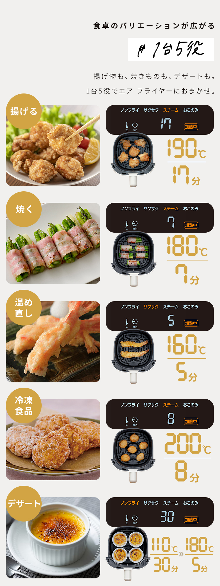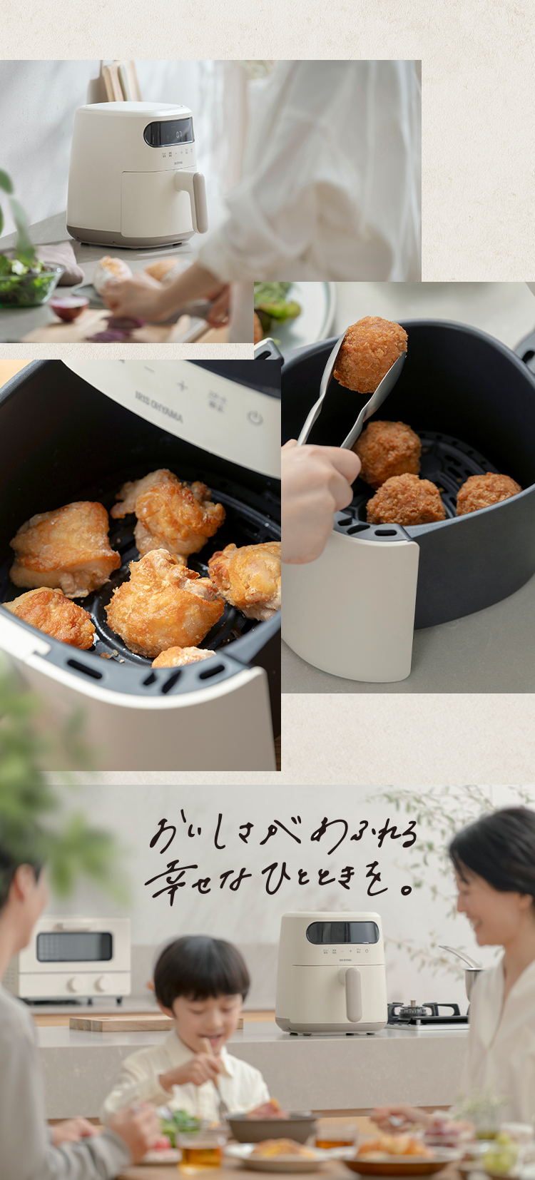 (検索用:電気フライヤー・家庭用・3L・スチーム・ヘルシー・カロリーオフ・揚げ物・揚げる・焼く・蒸す・温め直し・冷凍食品・デザート・過熱水蒸気エア・フライヤー・コンパクト・1人暮らし・エア・フライヤー電気・4967576809078・アイリスオーヤマ)