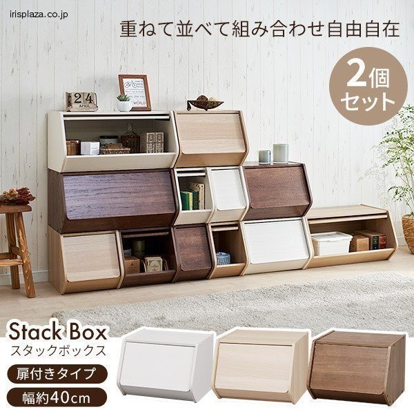 収納ボックス 2個セット フタ付き 幅40cm おしゃれ 引き出し スタックボックス 扉付き 収納ケース 木製ラック 前開きアイリスオーヤマ STB-400D
