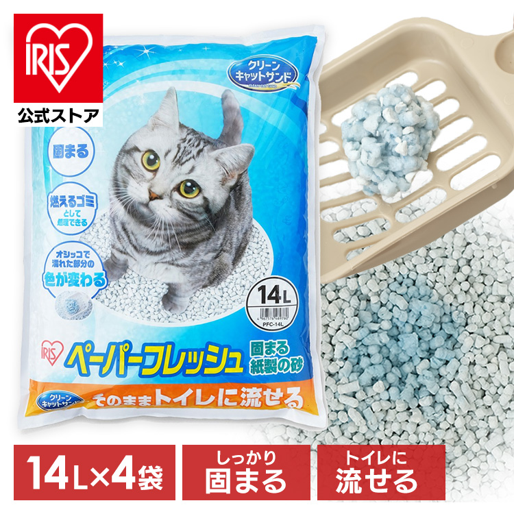 \4個セット/ 猫砂 紙 アイリスオーヤマ ペレット 飛び散り防止トイレに流せる 固まる 流せる再生パルプ セット ネコ砂 14L×4袋 ペーパーフレッシュ PFC-14L
