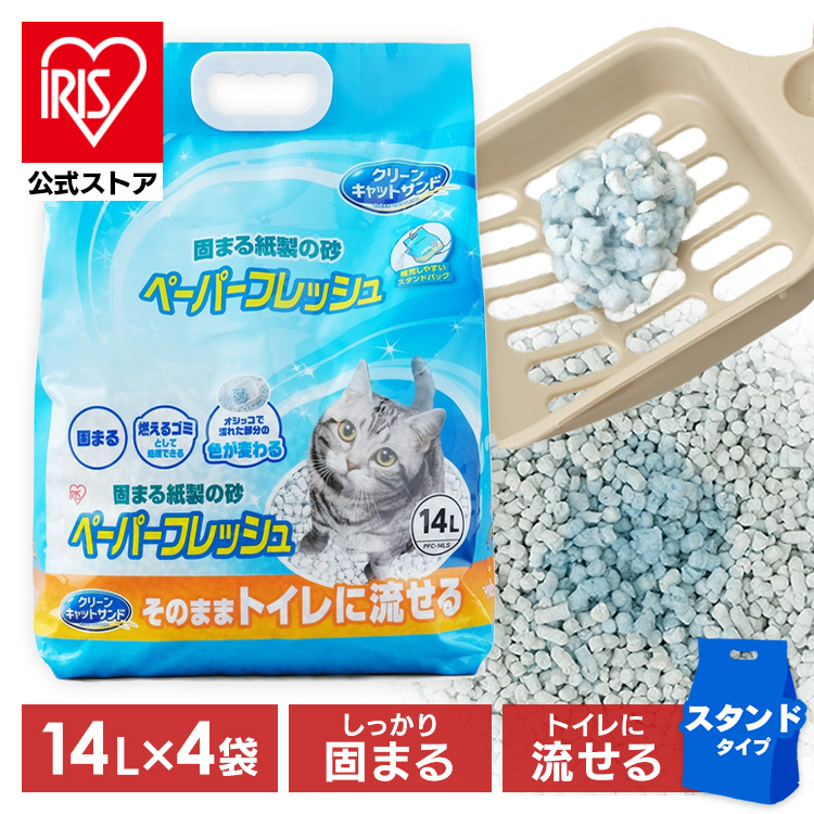 \4個セット/ 猫砂 紙 アイリスオーヤマ 56L 固まる 流せる 再生パルプ 飛び散りにくい ペレットタイプ ネコ砂 14L×4 ペーパーフレッシュ PFC-14LS