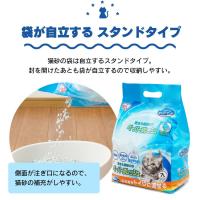 封を開けたあとも袋が自立するので収納がしやすく、側面が注ぎ口になるので猫砂の補充もラクラク。