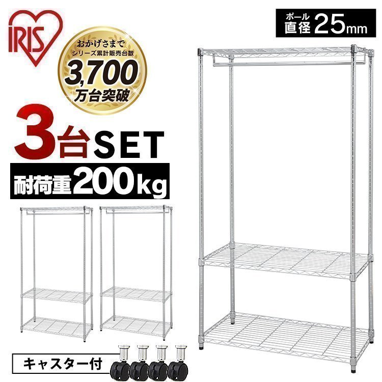 (検索用:ワードローブ・メタルワードローブ・衣類・収納・メタルシェルフ・ハンガーラック・クローゼット・メタルラック・一人暮らし・新生活・4967576154321・アイリスオーヤマ)