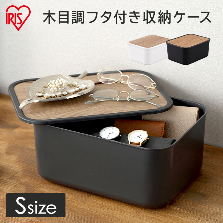 木目調デザインのフタがアクセントにシンプルで使いやすい収納ケース。