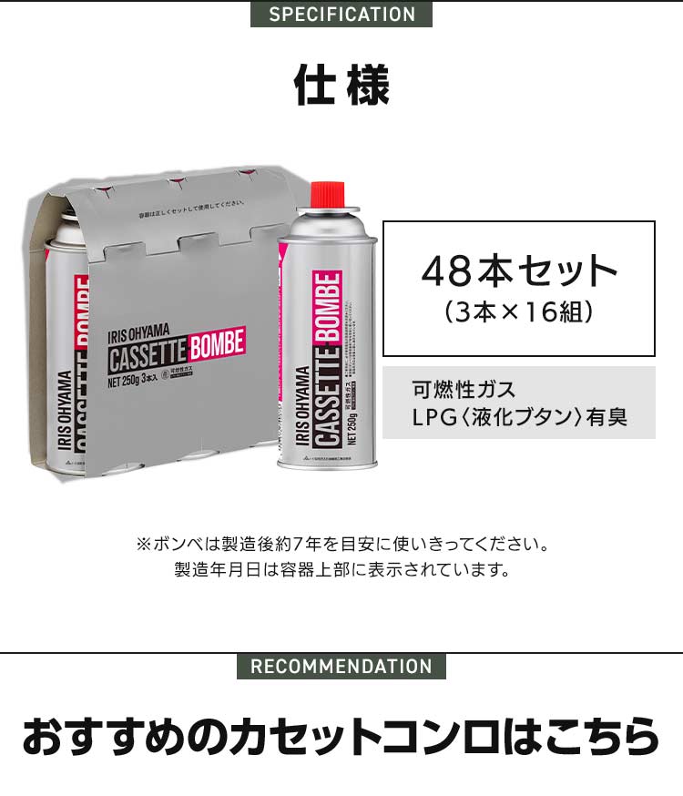 (検索用:48本・カセットボンベ・3本×16個・カセットボンベ・ガスボンベ・交換・買い置き・保管・カセットコンロ・卓上コンロ・防災・備蓄・アウトドア・4967576740883・アイリスオーヤマ)